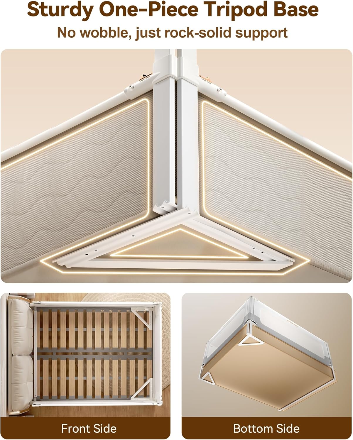 - Nail-Free Installation for All Beds- Oneya Baby’s toddler bed rails for king size bed feature an innovative nail-free design with a golden-triangle integrated support structure, preventing bed frame damage and ensuring easy setup. Crafted from thickened, hardened carbon steel tubes, the bed rails for toddlers outshine ordinary iron rails in strength and safety. This robust build keeps the bed stable, withstands strong pushes, and offers unwavering protection. So you can sleep soundly, too.
