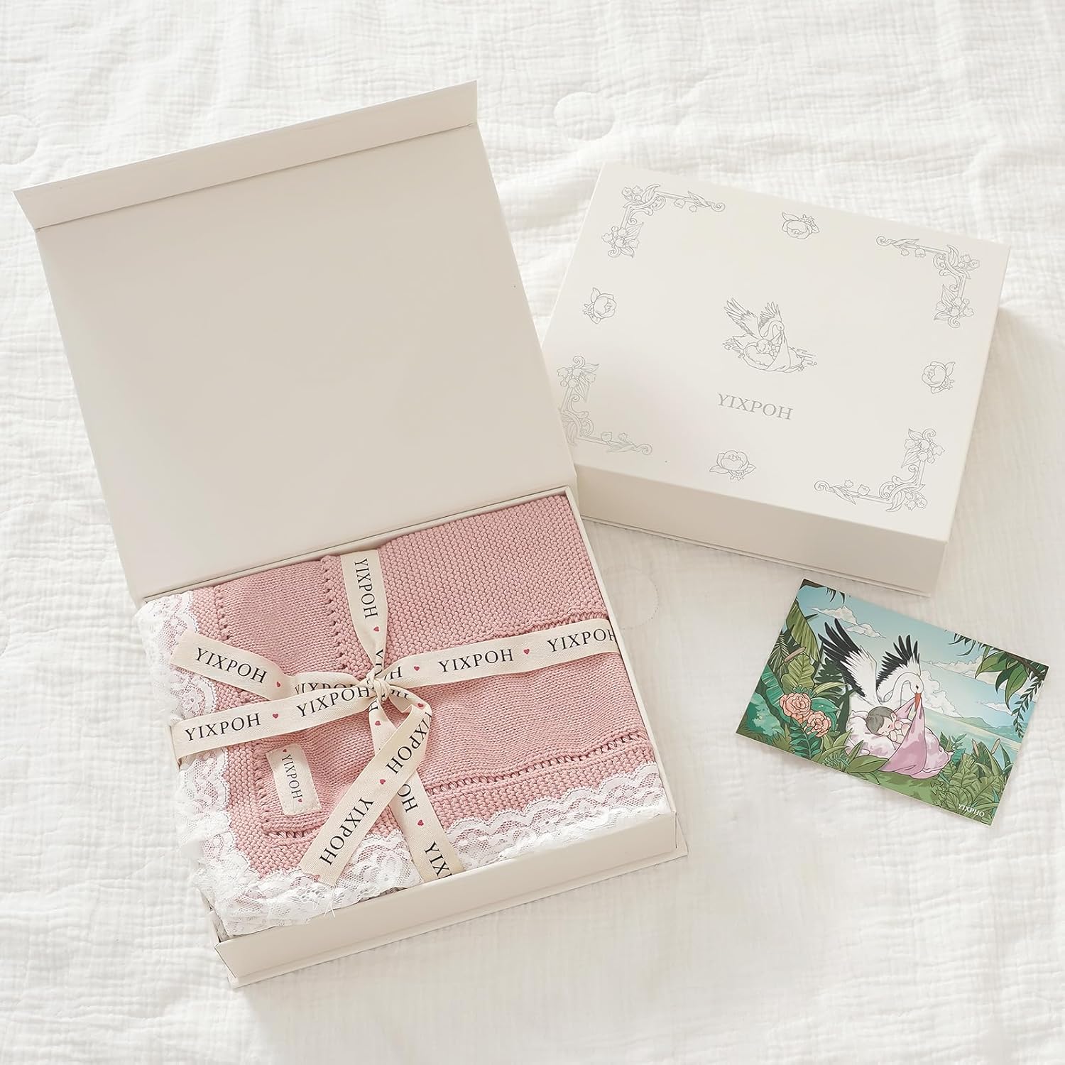 100% Organic Cotton Baby Blanket Knitted Softer Receiving Swaddle Warm Cozy Cuddle Crib Blanket for Newborns Infants Toddlers Boy and Girls Blush Pink
